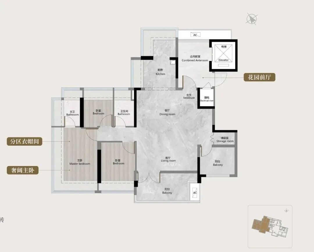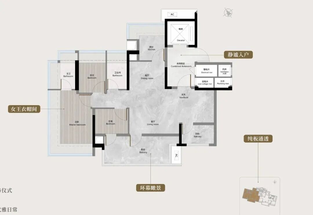 塔楼户型主打实用性,90㎡三房、100㎡三房/四房(柔性定制),均配备独立电梯厅,零飘窗设计,采光充足;玄关预留了800库收纳空间,阳台连通客厅+次卧。但部分户型次卧偏小,更适合作为+1房灵动空间。