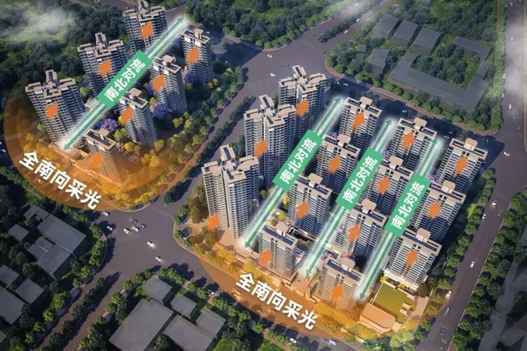 户型主打建面约100-138㎡全南向四房产品,无小三房户型,定位纯粹,适配二胎及多成员改善家庭。