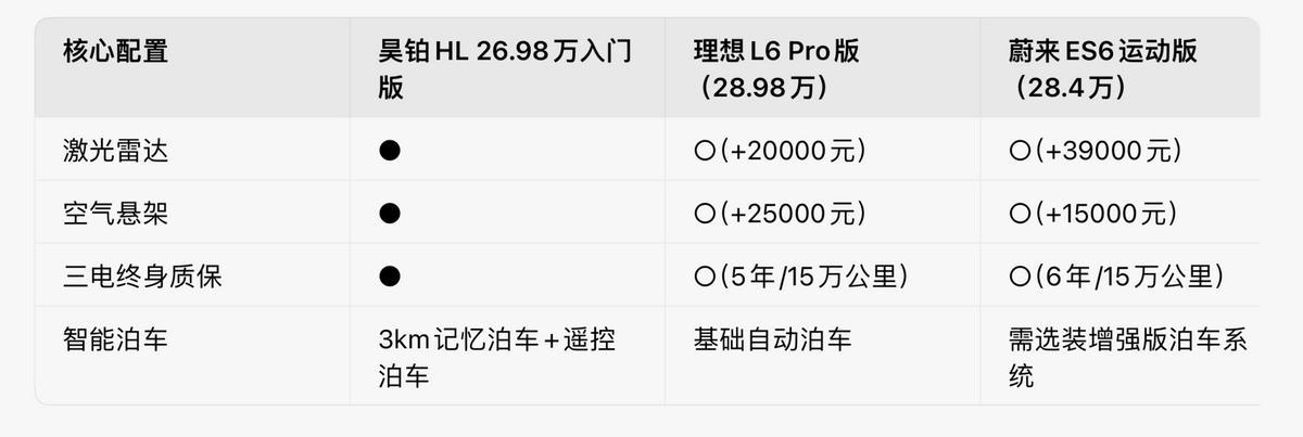 然而,仅有强大的动力系统并不足以使昊铂HL脱颖而出,智能科技的全面应用同样是它的一大亮点。与同价位的竞品相比,昊铂HL全系标配硬核智驾硬件,入门级版本即配备激光雷达、Orin-X芯片(算力508TOPS)等高级智能配置,这些在许多竞争对手的车型中还需要加价选装。这样的设计无疑让消费者在入门版就能享受到高阶的智能体验,甚至可以说它打破了以往入门版车型配置低的传统观念,这也使得更多预算有限但又不愿意放弃豪华体验的家庭用户找到了理想之选。