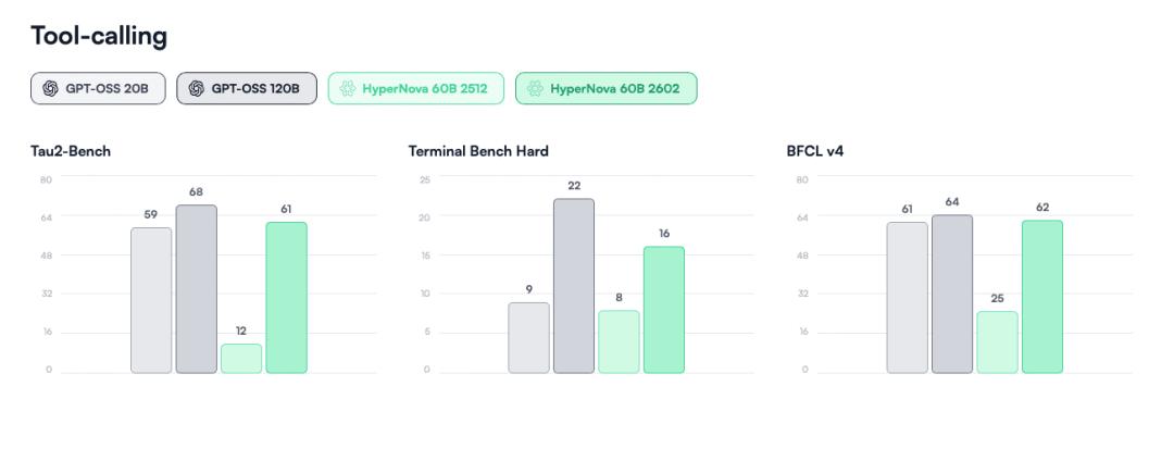 相比 1 月份的初版 HyperNova 60B,本次更新聚焦于工具调用(tool calling)和代理式编码(agentic coding),这些正是推理成本较高的核心场景。