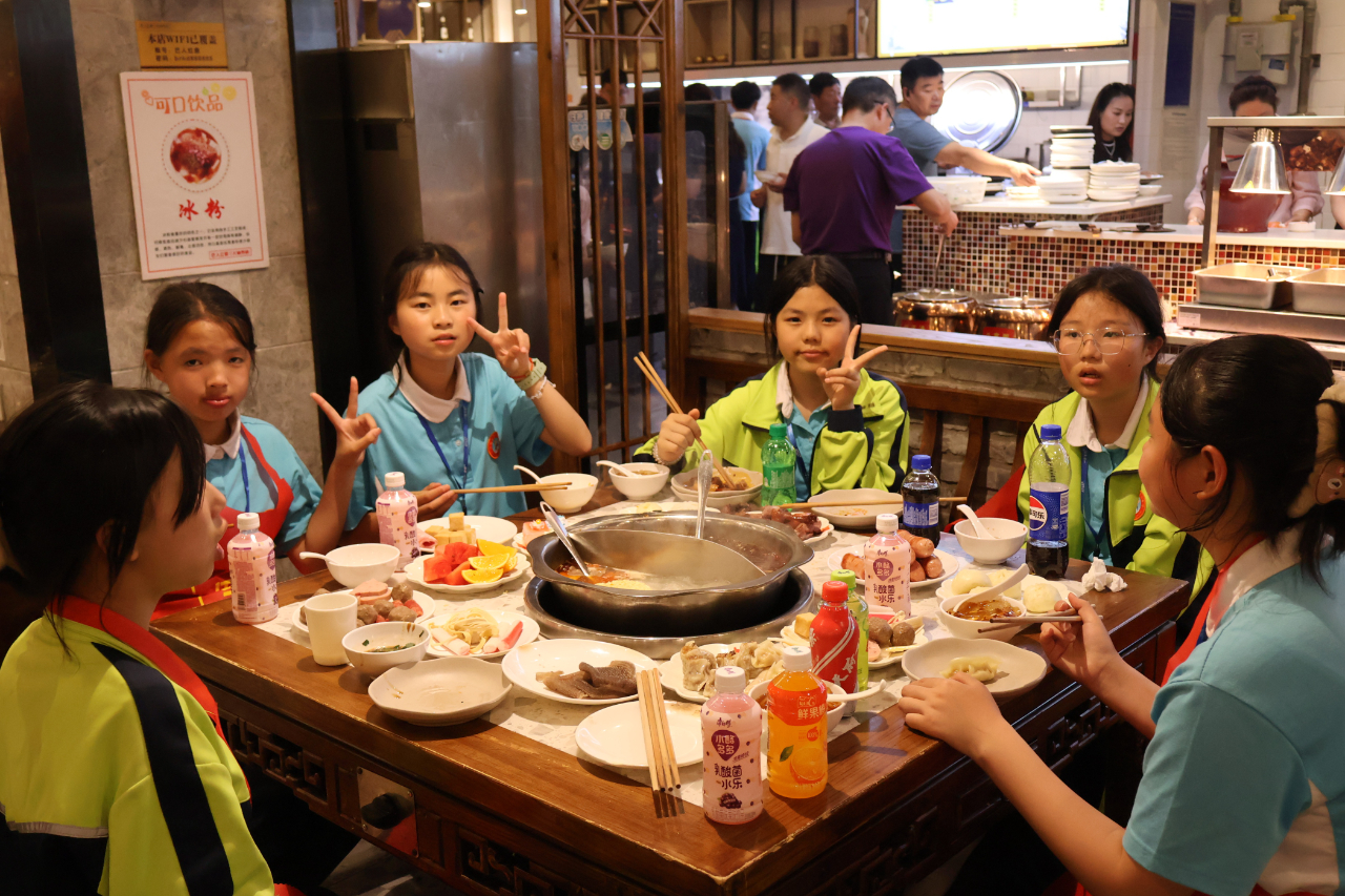 傍晚,品尝重庆特色美食——火锅,热气腾腾的火锅自助餐让同学们感受了重庆的“麻辣热情”,夜游解放碑与洪崖洞则展现了山城的璀璨与活力。霓虹映照下的吊脚楼群、灯火通明的千厮门大桥,传统与现代的交融令学子们惊叹不已。