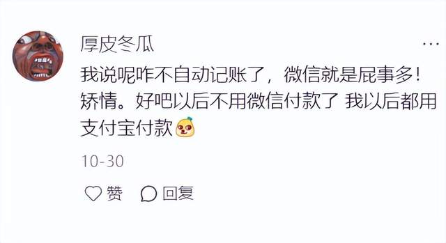 对于AI记账来说,如果不能记录微信支付,那就没有意义了。对此部分网友也很反感,有网友称微信就是屁事多!矫情。好吧以后不用微信付款了 我以后都用支付宝付款。