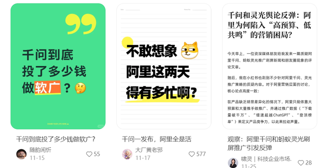 虽然已经有网友开始反感这种营销方式,但是大规模的投放,确实让千问、灵光的下载量激增,同时也让阿里的AI味越来越浓。