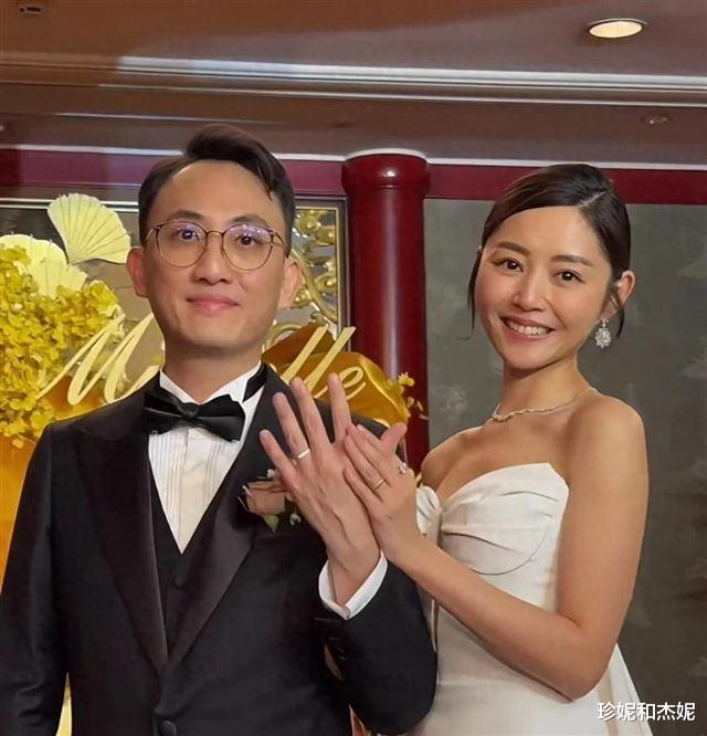 而她的丈夫则显得相对普通,但两人在一起,携手展示着幸福的婚戒。