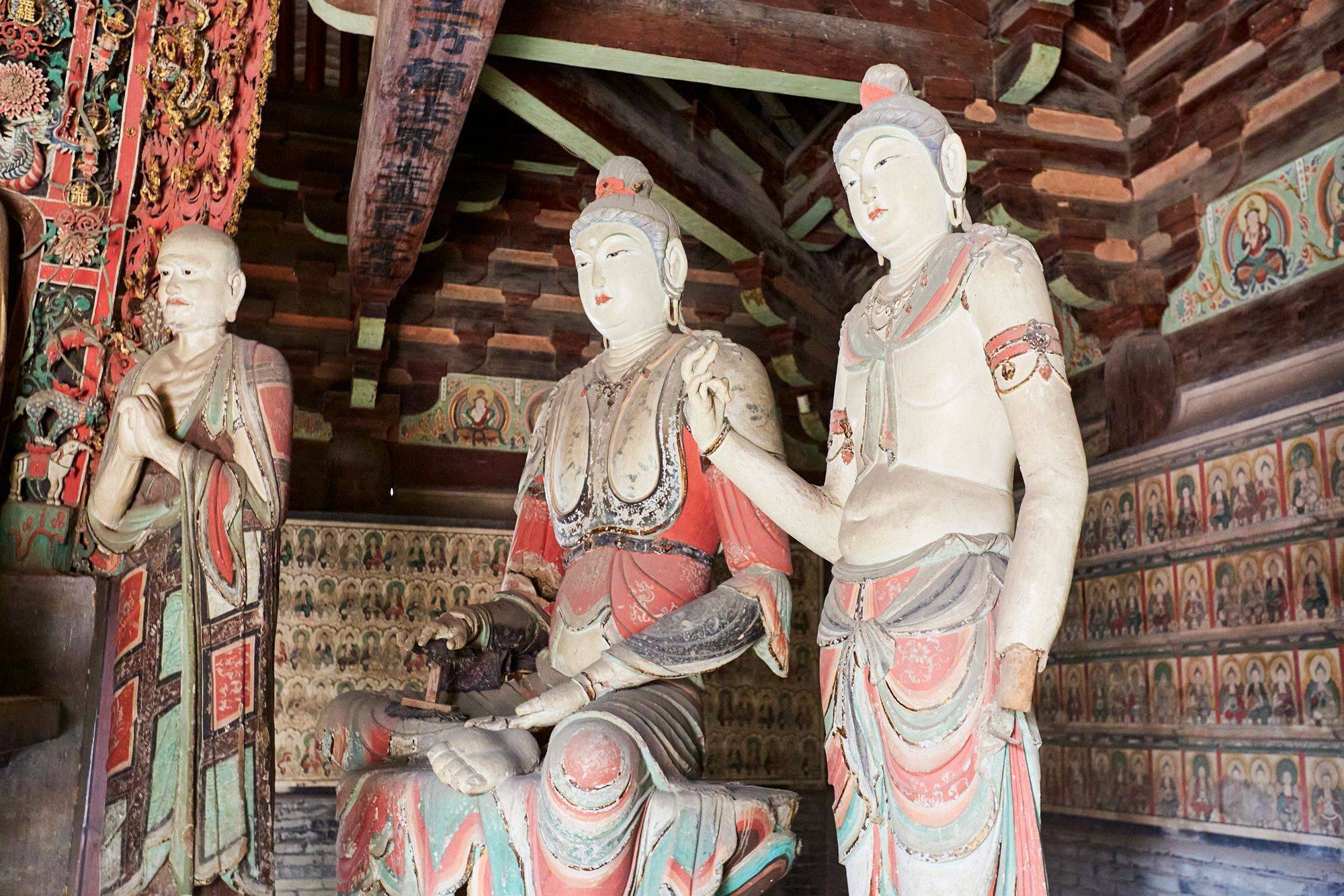 镇国寺和双林寺位于平遥古城一北一南,仿佛双子星拱卫着古城却又绝对不仅仅是陪衬,这两座古刹各有各的精彩故事,打卡镇国寺,最值得看的就是五代时期的建筑和彩塑。