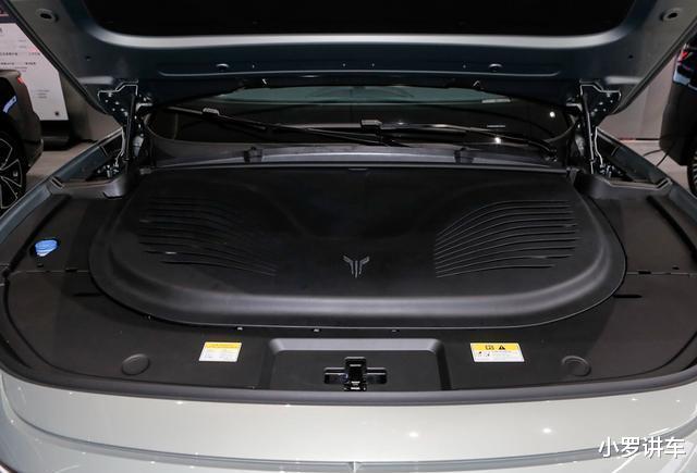 它采用了封闭式窄条幅格栅设计,内部还加入了发光元素,车顶上还多了个激光雷达,看起来科技感十足。