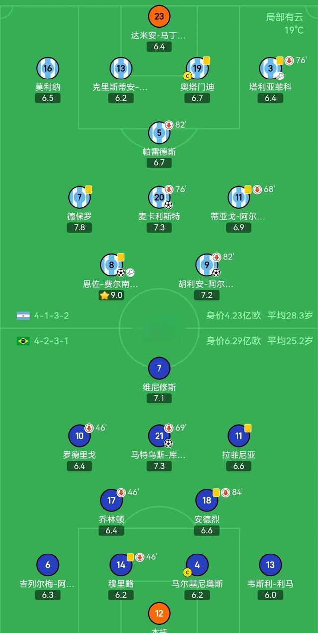 本场对巴西队,阿根廷队中场展现强大技术能力和传接配合,巴西双后腰乔林顿与安德烈难以遏制其进攻。
