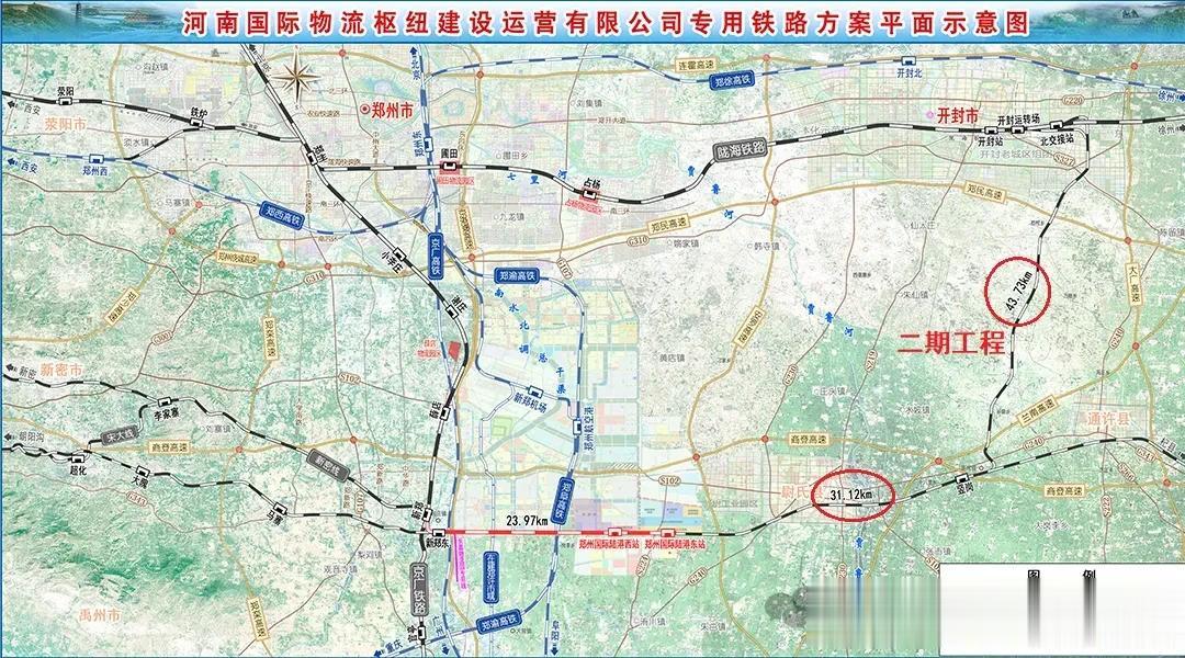 据悉,郑州国际陆港专用铁路利用既有朝杞铁路线位进行建设,一期线路全长23.92km,投资44.9亿元,已建成通车。
