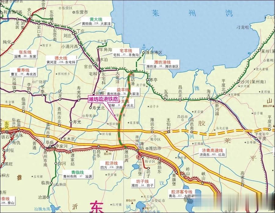 潍坊滨海至潍坊西疏港铁路走向示意图