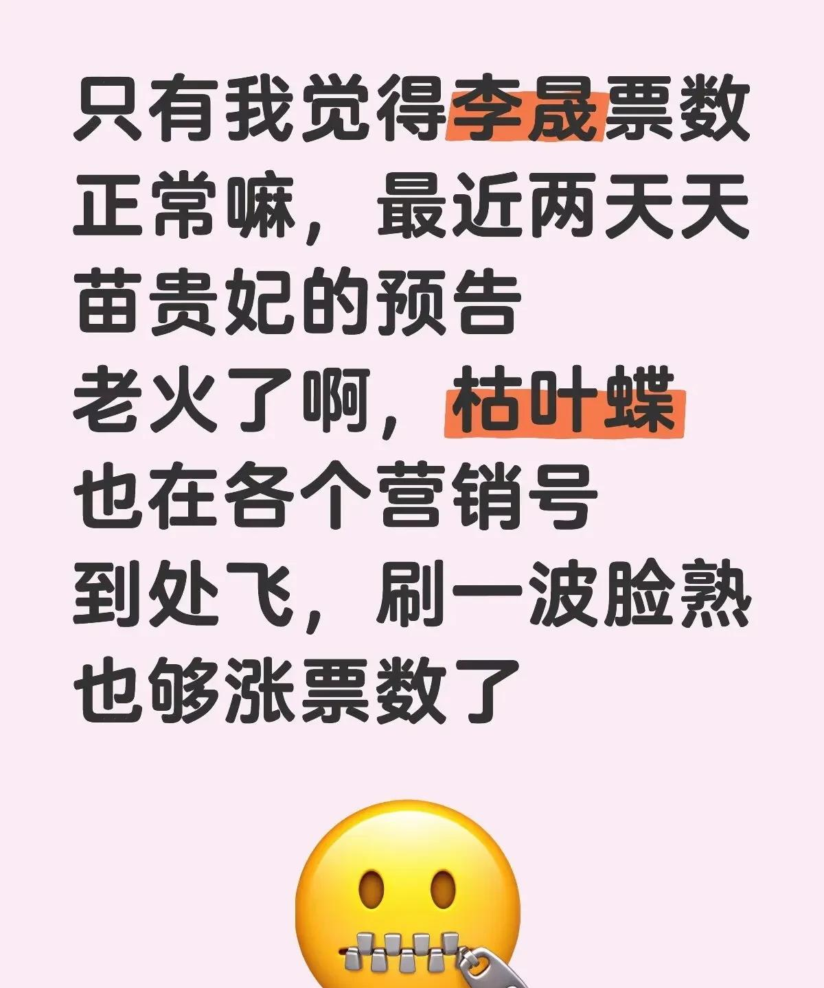 “只有我觉得李晟票数正常嘛,最近两天苗贵妃的预告老火了啊!”