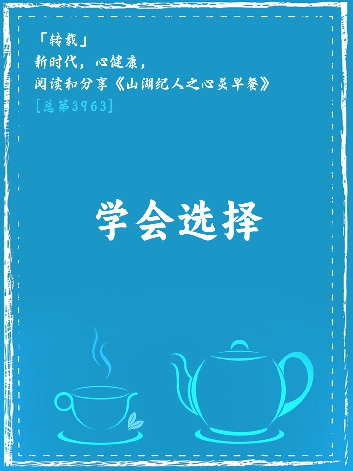 生活中,我们总要面临各种选择,大到选择一座城市、一所学校、一个专业、一份工作,小到选择穿什么衣服、吃什么菜、喝什么茶、坐哪趟车。
