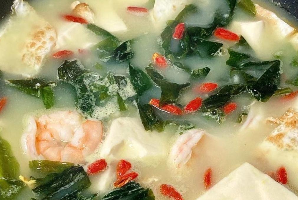 这名字乍听像是繁复的餐厅菜单,但裙带菜虾仁豆腐汤在家中烹饪却是轻松简单。