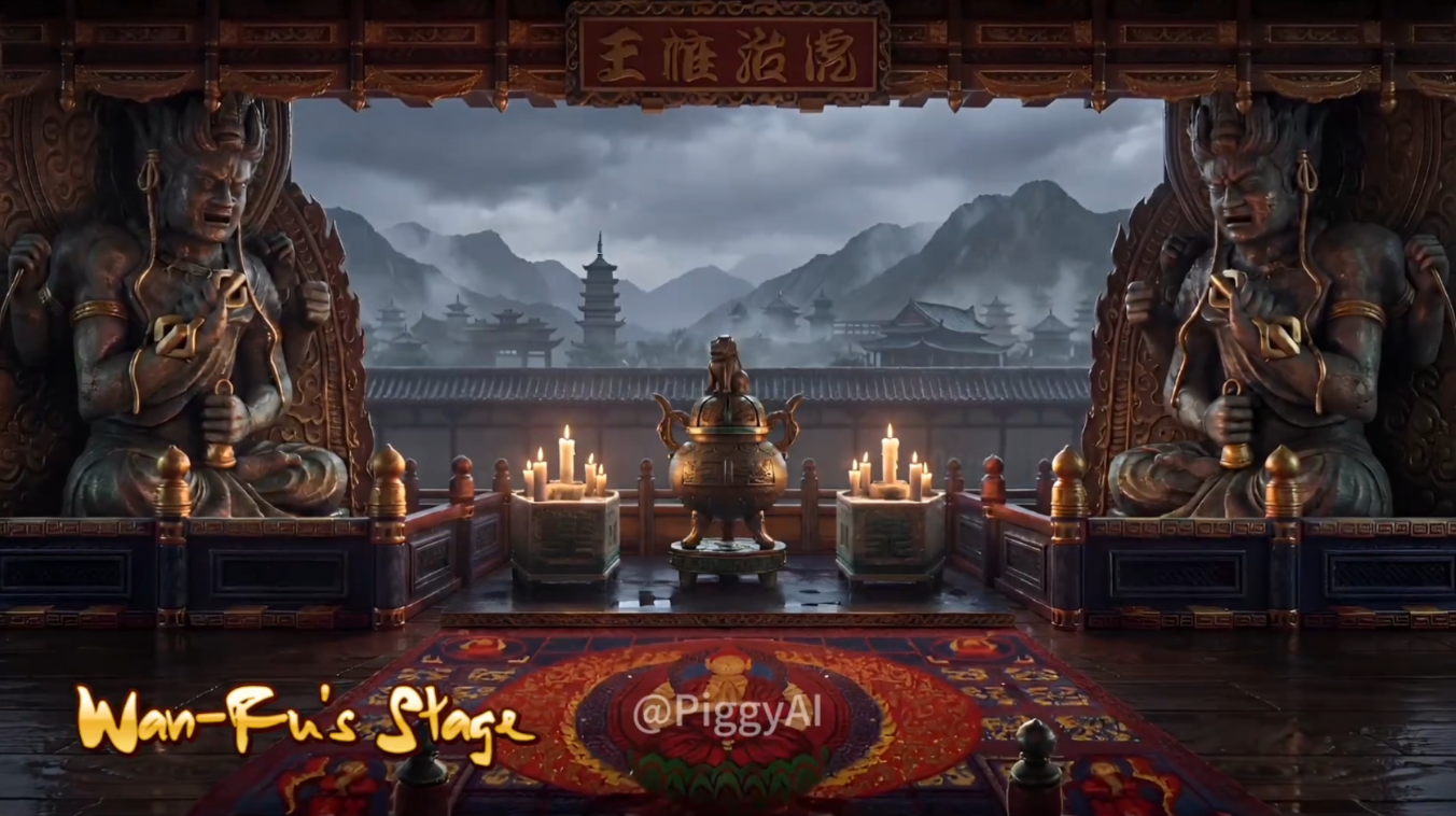 他是清朝一个著名的将军,出身于名门贵族,王虎有巨大的野心,他的梦想就是统一中国,场景中每一个舞台道具都会变色,天空是灰色的。