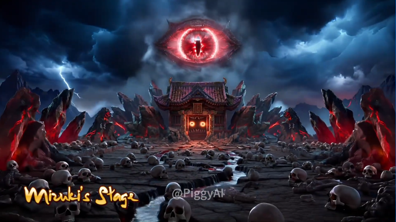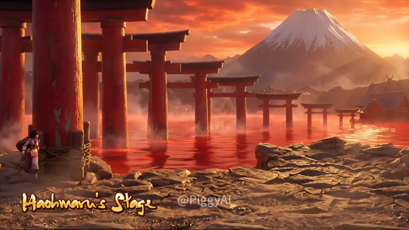 日本著名的神圣的山峰,战斗发生在菩提寺的正门,场景被扇形的原石环绕,岩石上可有汉字,指向岩石的光束,还有漂浮在邪恶力量下的帕伦克石和丹吉尔石,中间还有一对恐怖的眼睛,真的太可怕了。