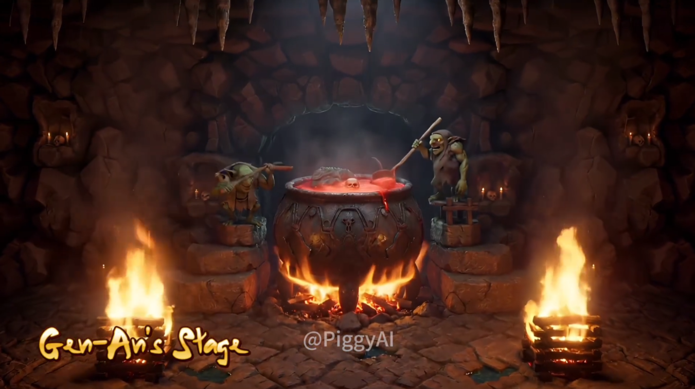 场景的舞台是棕色的,有水坑,中间有一个灰色的大锅,锅里面和有很多生物在上面烹煮。当不知火幻庵被击败的时候,锅里其中一个生物会掉在地上,真的太可怕了。