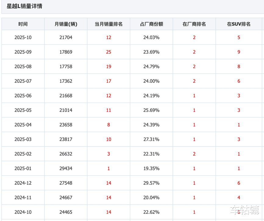 更值得注意的是,星越L的销量增长势头仍在持续。今年9月,该车型单月销量达17869辆,环比增长0.63%。在新能源汽车冲击最为猛烈的时期,星越L却实现了稳定增长。
