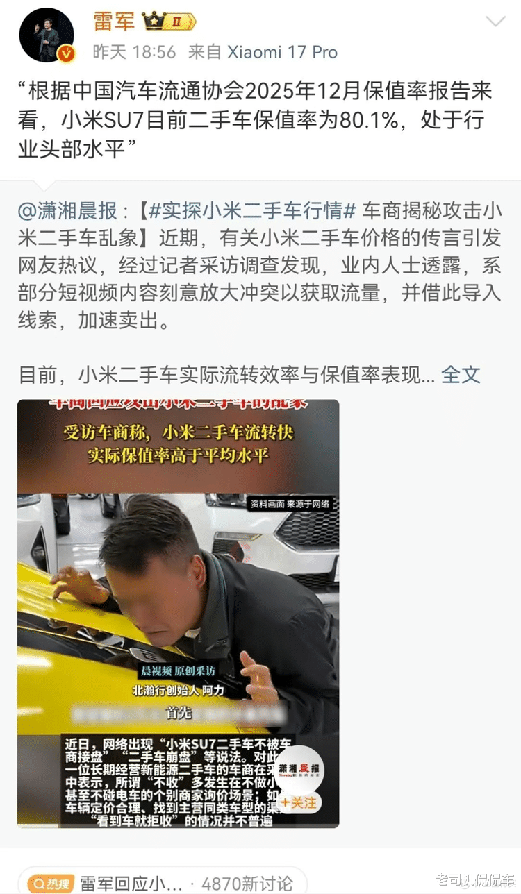 因此,这种“卖惨”表演,和我们在正经二手车平台上看到的普遍十几万、二十几万的标价,还有专业机构发布的保值率数据,放在一起看特别魔幻。