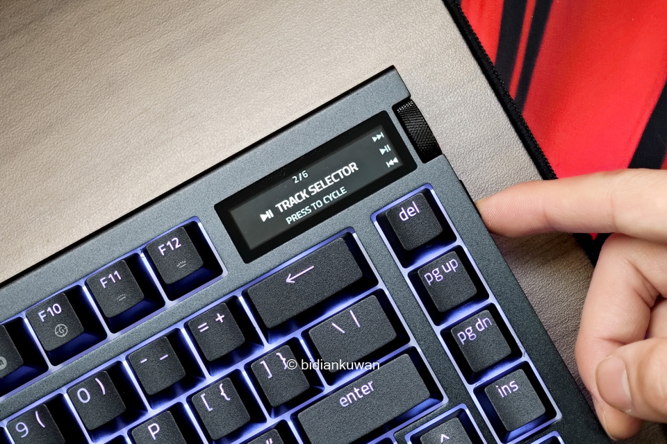 ▼2英寸OLED屏特写:实测可进行增减电脑音量、选取播放曲目,进行OLED屏亮度、键灯亮度调节;还可以利用旋钮快速切换桌面应用,和缩放窗口等等。