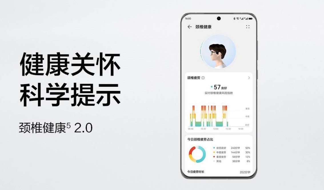 对于长期伏案工作的用户,颈椎健康问题不容忽视。华为智能眼镜 2 钛空圆框光学镜的颈椎健康2.0功能,能够实时监测用户的低头姿态,并在连续低头过久时发出语音提醒。结合与中山大学附属第一医院康复医学科联合推出的颈椎健康风险指数,用户可以在手机端查看科学的统计报告,及时调整姿势,有效管理颈椎健康。