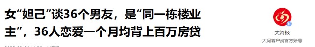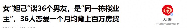 大河报:2025年3月4日《女“妲己”谈36个男友,是“同一栋楼业主”,36人恋爱一个月均背上百万房贷》