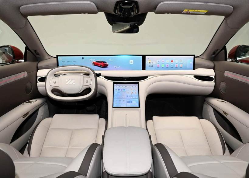 车内方面,新款智己L6中控台几乎没有改动,方向盘有所调整,从此前的半圆型改回传统的椭圆形,恢复方向盘上半部分后打方向顺手多了,其实不用担心上半部分遮挡仪表屏读数,上汽工程师做了系统优化。前排中控另一个改动的地方在中央T字区域,手机无线充电板旁的储物格被填平。另外的一些改动是门板上的装饰条,新款采用了平直处理。在全景天幕中,新款车型采用了分段式设计,满足前后排乘客不同需求。