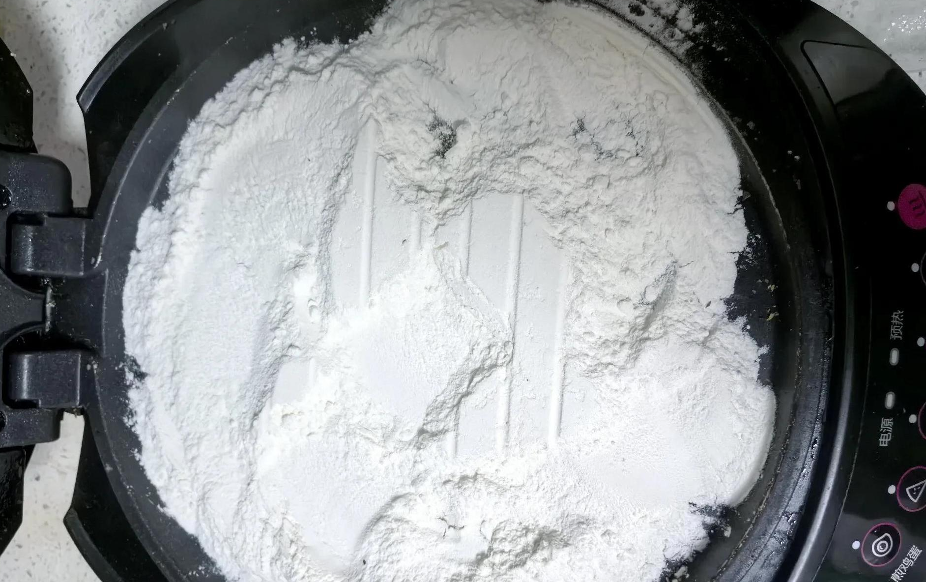 在电饼铛中铺油后放入面糊,边加热边搅拌,去水后做成面团,似乎一切都在掌控之中。