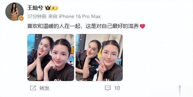 5月27日一大早,王灿在社交平台高调晒出了两张照片,并配文称:“喜欢和温暖的人在一起,这是对自己最好的滋养❤️”