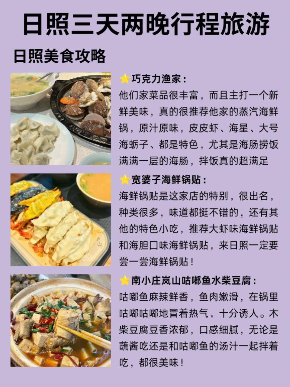 📍巧克力渔家的海鲜新鲜又实惠,蒸汽海鲜锅🍱蘸上酱料味道真的很绝,还有海肠捞饭、清蒸石斑鱼🐟都很不错!还有✅宽婆子海鲜锅贴,焦脆的锅贴底配着软乎的面皮,锅贴🥟皮儿薄得能看见里面的馅料,蘸点醋、辣椒油,酸辣又开胃,越吃越香!想吃🐟的姐妹👭就去✅南小庄岚山咕嘟鱼木柴豆腐,咕嘟鱼是他家的招牌,软糯入味真的绝了!