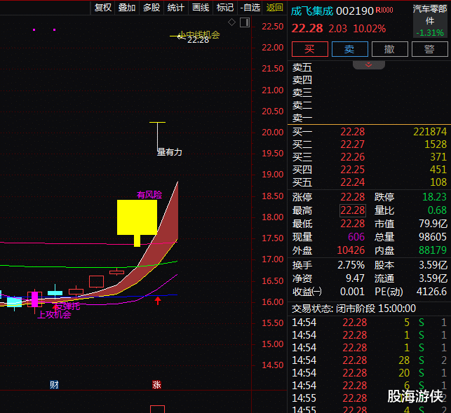 从技术面上来看,成飞集成(002190)该股在板块的带动下,3天3板!3个交易日股价上涨了33.09%!均线呈现多头排列,MACD有继续上扬的动力,主力资金净流入1.28亿元,该股入选龙虎榜,净买入额为6821万元。