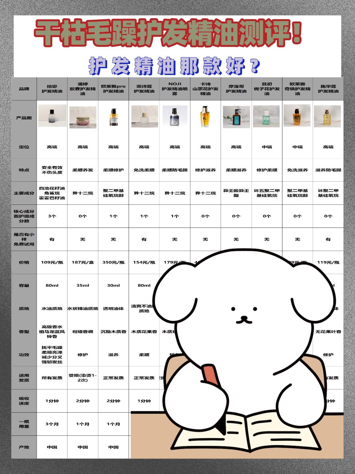 最近做干枯毛躁护发精油测评,后台全是问什么头发精油好用、护发精油适合什么发质的姐妹,今天就统一解答下。首先说护发精油适合什么发质,这是选对产品的关键,干枯毛躁发质要选滋润度高、能修护毛鳞片的,比如含有植物精油成分的,能补充发丝水分和营养;油性发质要选质地清爽、不会加重头皮负担的,避免用过于厚重的类型;细软发质则适合轻薄一点的,防止头发变扁塌。然后说什么头发精油好用,其实没有绝对的标准答案,核心是适配自己的发质问题,我这次做热销款重磅测评对决,发现很多热门产品其实只适合特定发质,不是万能的。比如有些产品对干性发质的干枯毛躁很有效,但油性发质用了就会觉得油腻。接下来我会把这次测评的详细结果分享出来,包括不同热销款的适配情况,帮大家精准找到适合自己的,记得收藏别错过。