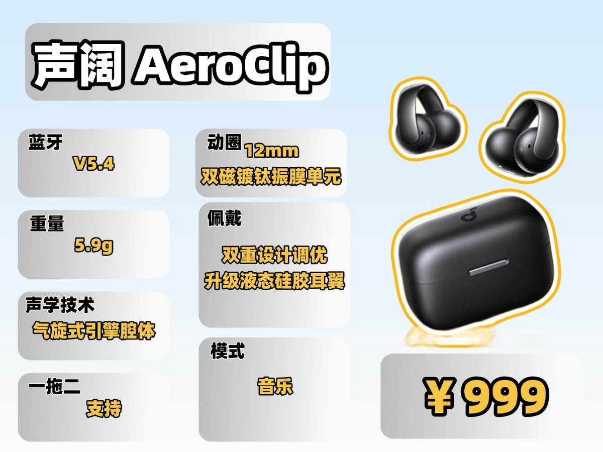 推荐理由:稳固佩戴与卓越音质的高端耳夹,适合追求音质的用户