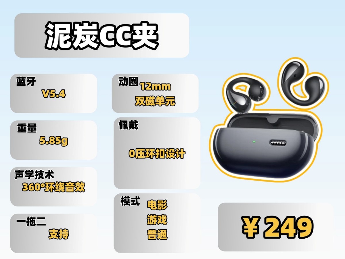 推荐理由:百元耳夹的性价比天花板,音质媲美500元左右的产品