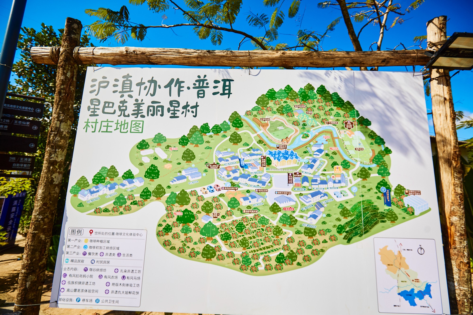 思茅区南屏镇南岛河村白沙坡的美丽星村地处海拔900至1500米处,气候和地理环境优越,原本村子就是以种植咖啡豆为主,后普洱市携手沪滇协作、星巴克共同打造出“美丽星村”项目。如今在村中可以采摘咖啡,学习拉花等技术,还可以在木刻、扎染等工坊中感受非遗魅力。
