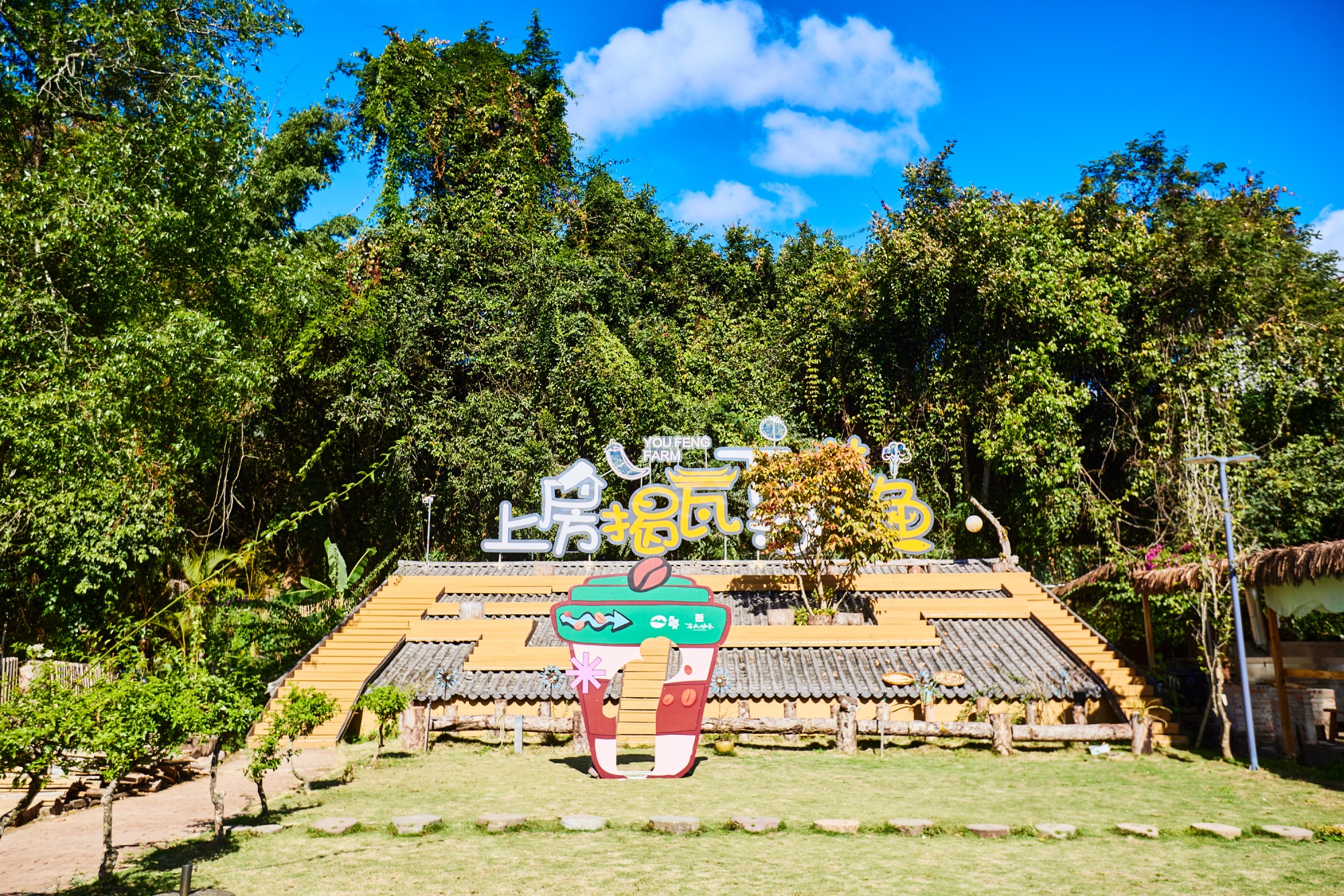 如果喜欢骑马一定不要错过“有风马场”,马场招牌制作得野气十足,不远处就是一片片咖啡园。村中规划了专门的骑行路线,选上一匹马,一路经过咖啡种植园,穿过山林,边骑马边闻着咖啡香,是独特的田园体验。