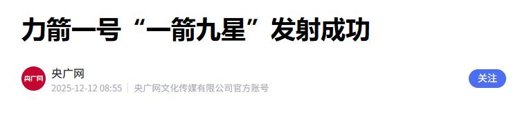 央广网 2025-12-12——力箭一号“一箭九星”发射成功