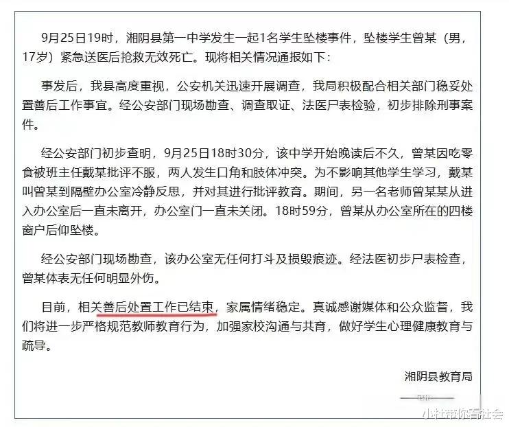 在湘阴第一中学的宁静晚自习中,一位高三男生的生命戛然而止。9月25日,他因一罐八宝粥的小事,与班主任发生争执,随后在办公室坠楼身亡。这起悲剧不仅震惊了校园,也引发了社会对教育方式和学生心理健康的深刻反思。家长的悲痛和疑问,如同一道难以愈合的伤口,他们迫切需要一个合理的解释。