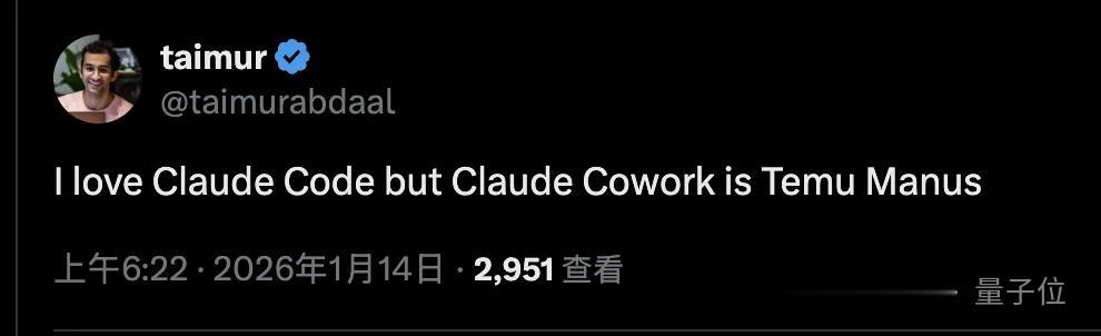也有人认为目前Claude Cowork还比较早期,算是“拼多多版”Manus。