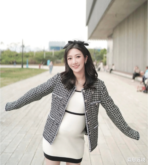 年轻妈妈们自发解析何依婷的穿搭密码:如何用垫肩外套平衡孕肚曲线,怎样通过A字裙摆修饰身形。