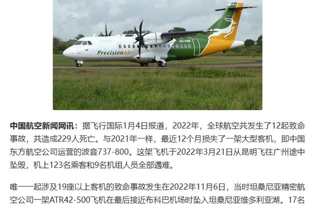 根据飞行国际的数据能够查到,2022年一整年,全世界航空界总共出现12起致命的航空事故,死亡人数在229人。