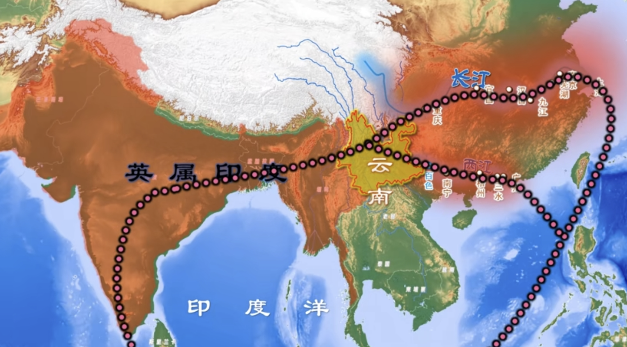 “两江一洋” 战略的核心连接点是云南,若英国控制云南,就能形成一个庞大的海陆包围圈,将南中国、中南半岛、南洋群岛置于其军事和经济殖民威慑之下,并且有机会觊觎西藏。为此,英国采取了诸多行动,如 1897 年,中英签订《续议缅甸条约》,英国通过地图标错、文字游戏等手段获取野人山和果敢地区,试图以此控制怒江,打通滇缅交通线,进而串联三大战略区,这也导致中缅边界问题成为历史遗留问题。此外,英国还将八莫和腾越(今瑞丽和腾冲)作为渗透据点。然而,英国在云南的行动并不顺利,尤其是修路计划受阻,其阻力不仅来自本土势力,还来自竞争对手法国。