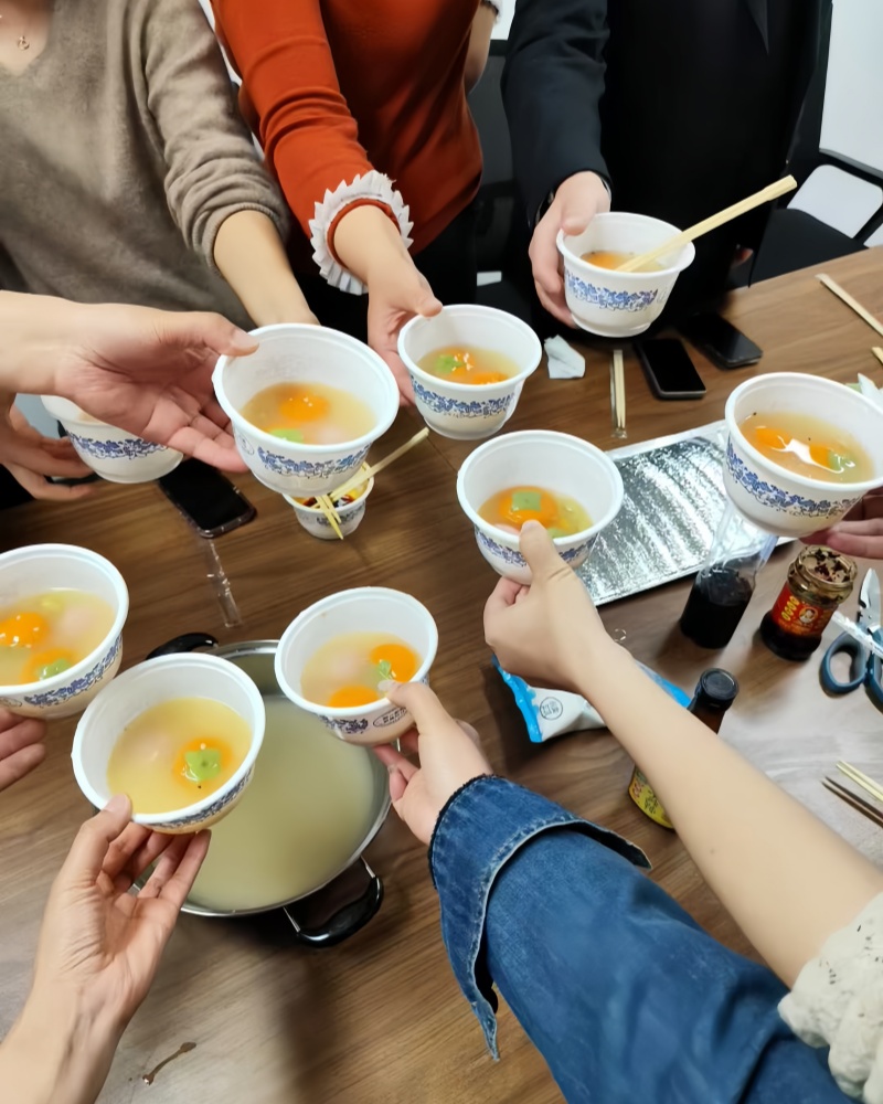 今天,食堂早早地就忙碌起来。厨师们精心准备了热气腾腾的汤圆,饺子种类丰富多样。公司管理层带着节日礼物和洛川苹果,走进车间、研发室、办公楼,亲手将节日礼物送到每一位员工手中。“大家辛苦了,元宵节快乐!”“祝各位生活像苹果一样平平安安,红红火火”。整个车间传来一声声祝福的声音。