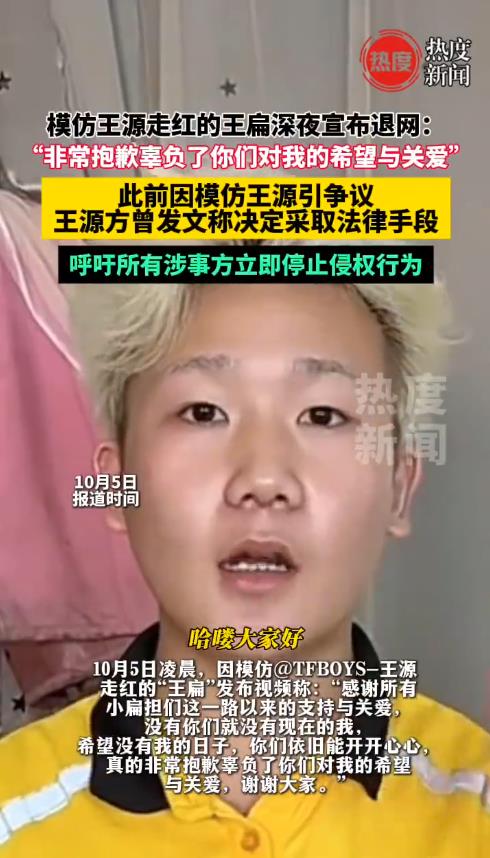 而10月1日,他被拍到身穿外卖服送餐时即兴跳舞,画面被网友调侃为“全国巡演”,更坐实了“假退网、真炒作”的争议。其一系列模仿TFBOYS成员王源的行为,如夸张版wink,被批评为刻意丑化,不仅涉嫌侵犯肖像权和名誉权,更被指“污染网络环境”、“带坏风气”。