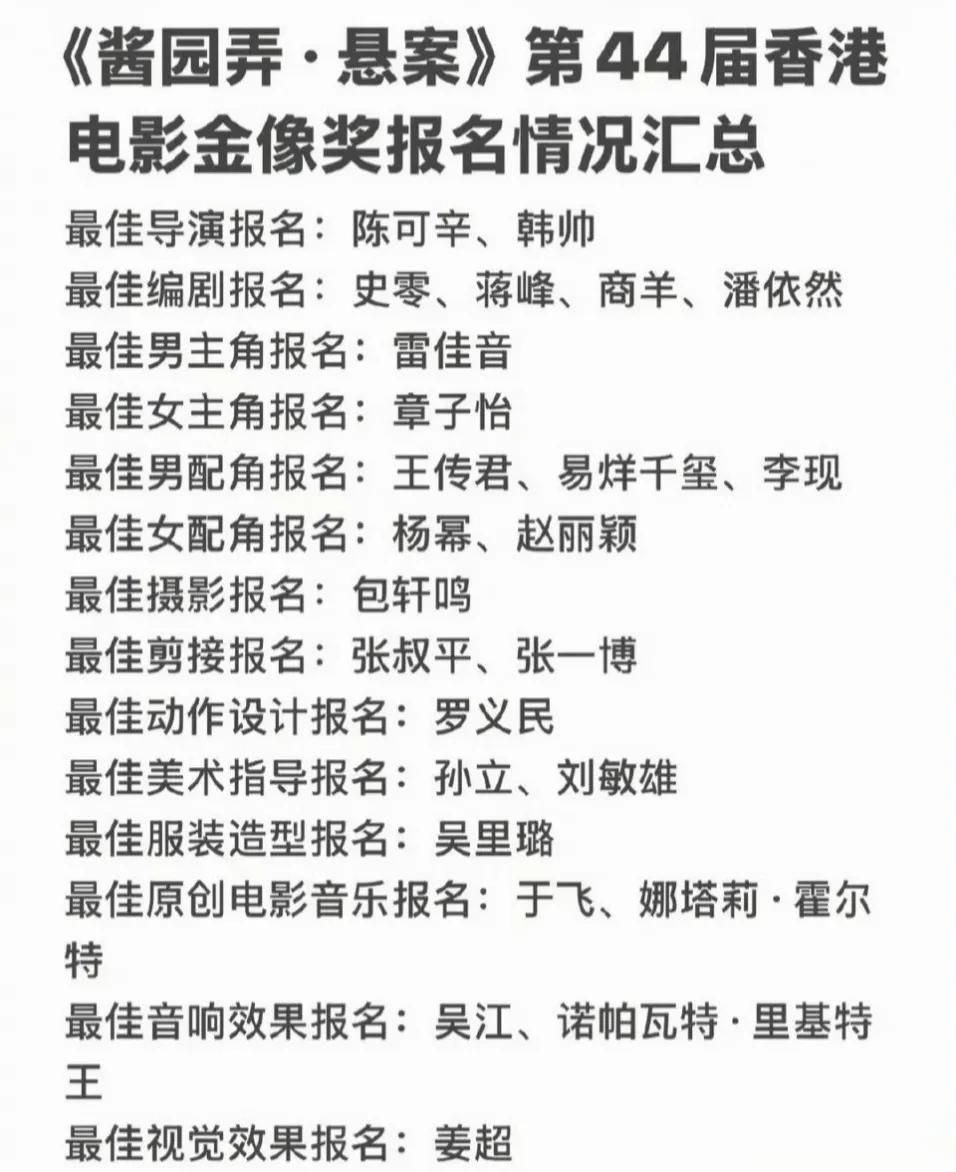 至此,《酱园弄》在金像奖演员方面的报名名单盘点完毕。
