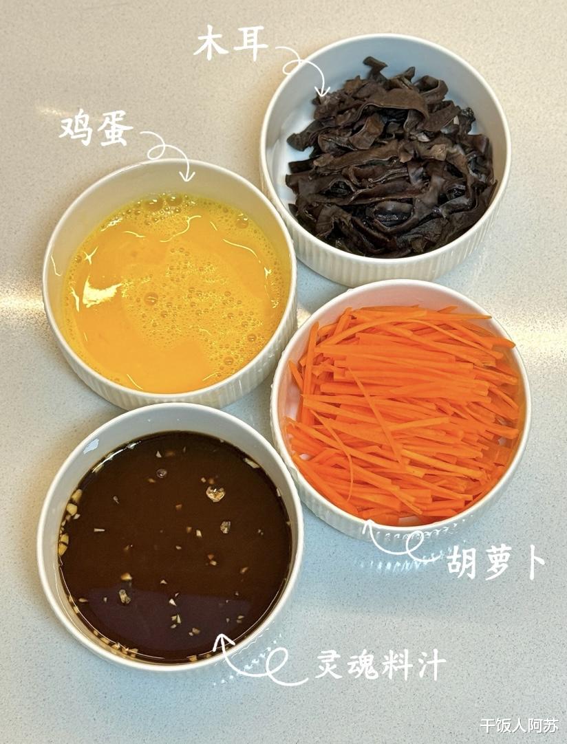 这道菜的灵魂,藏在提前调好的鱼香汁里。准备一个小碗,倒入2勺生抽、1勺陈醋、1勺白糖、1勺蚝油、1勺淀粉,再加少许清水搅拌均匀。这个料汁是鱼香味的关键,酸甜咸鲜的平衡全靠它。建议一次性调好,炒菜时直接淋入,避免手忙脚乱影响火候。食材处理同样重要:鸡蛋打散备用,木耳泡发后切丝,胡萝卜去皮切丝,尽量保持粗细均匀,这样炒出来口感更协调。