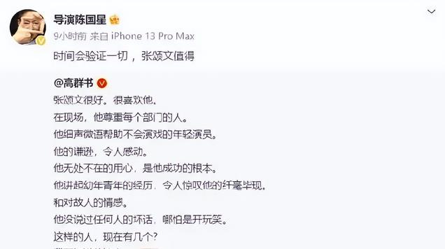 况且高叶立马就回应了张颂文的留言。