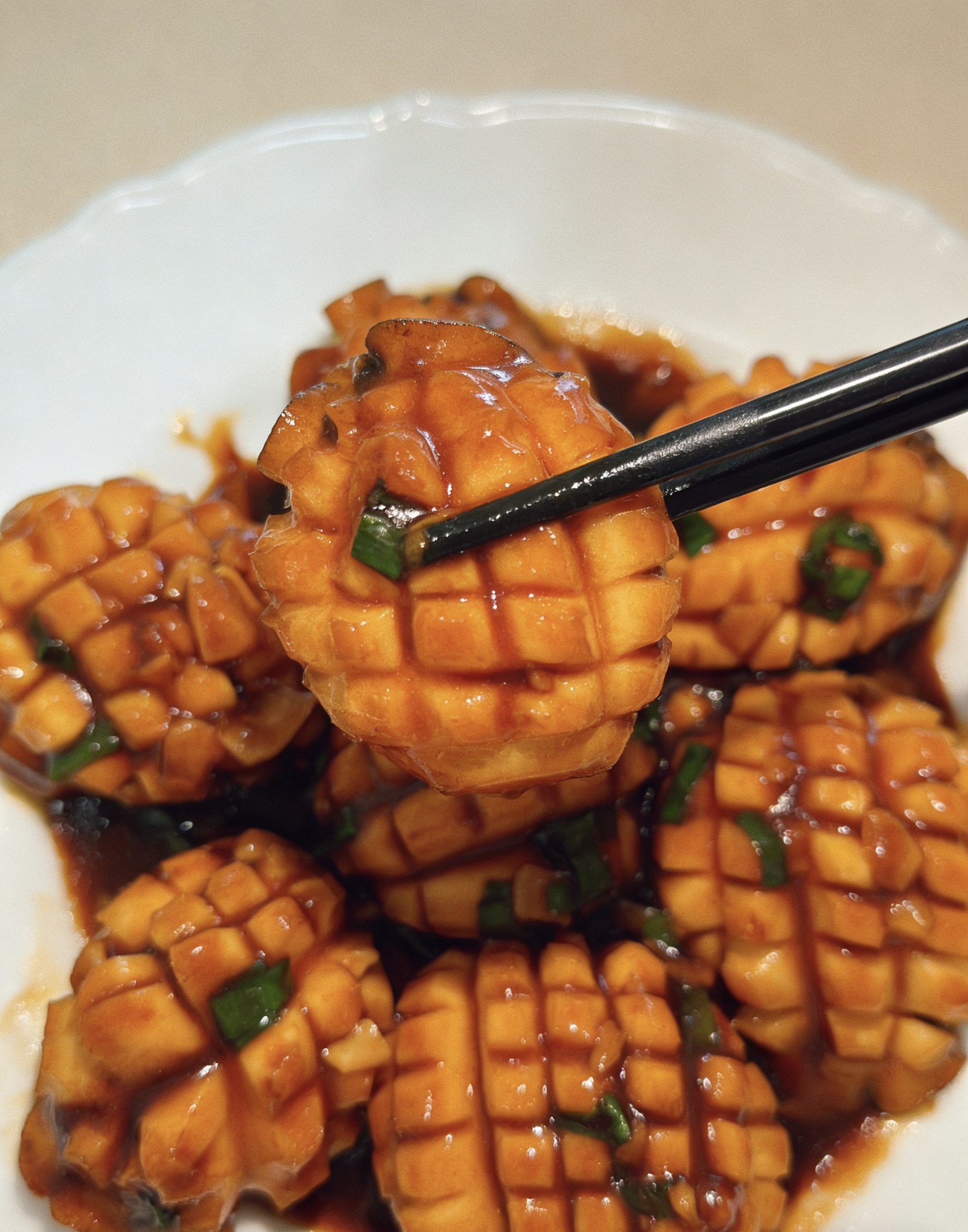 关键魔法来了:起锅前淋半勺蜂蜜,别问,问就是“酒楼后厨不告诉你的秘密”。蜂蜜让酱汁挂壁又透亮,回口多一层温柔甘甜,完胜外面死咸死咸的版本。最后撒葱花+白芝麻,绿得跳、白得闪,端桌那一刻手机先吃,朋友圈定位直接写“自家小馆”,点赞秒到。