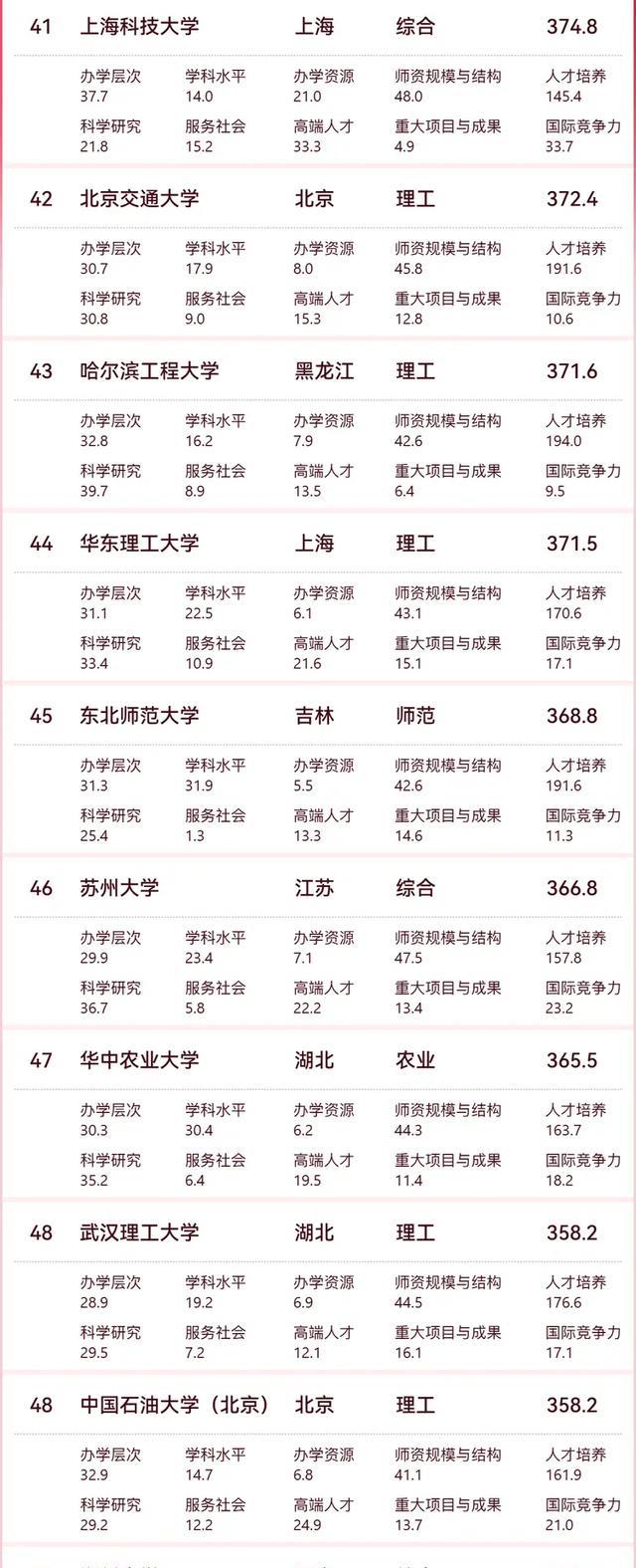 像南方科技大学排名第32位,上海科技大学位列第41位,这两所创建时间并不长的高校,不分学科甚至已经超越了多所传统强校,他们依托区域经济优势,走出了一条差异化发展道路。