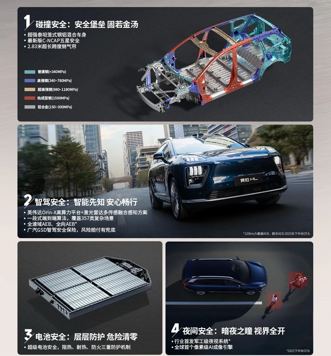 结构安全:超强钢铝混合车身+五纵多横传力结构,2024版C-NCAP五星认证。