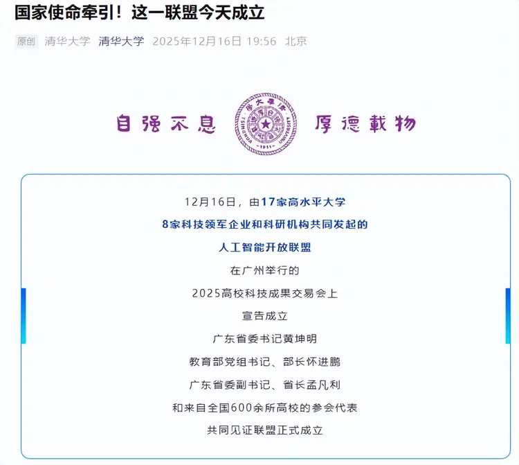 想知道答案,就得先了解这个“人工智能开放联盟”的运作模式,该联盟由17所高校和8家科技领军企业和科研机构合作,秘书处的选定毋庸置疑是清华大学。
