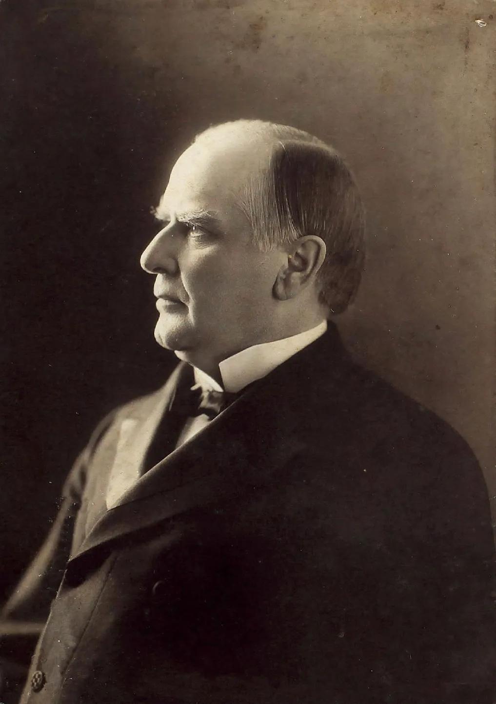威廉.麦金莱,美国第25任总统,南北战争爆发后18岁的麦金莱参军入伍,战争结束后22岁的麦金莱以少校军衔退伍,先后担任过检察官、众议员、州长,1896年当选为美国总统,并在1900年成功连任。在任期间麦金莱发动了美西战争,打败了西班牙海军,夺去了原本属于西班牙的古巴、波多黎各、菲律宾、关岛,吞并了夏威夷,并派兵参加了八国联军,在中国大肆掠夺。1901年9月,麦金莱在参加一个招待会时被无政府主义者利昂.乔尔戈斯击中两枪,在随后的手术中医生只取出了其中一枚子弹,另一枚子弹被留在了麦金莱的腹中,最终第二枚子弹在体内引起溃烂,麦金莱也因此离世,成为美国建国以来第三位被刺身亡的总统。